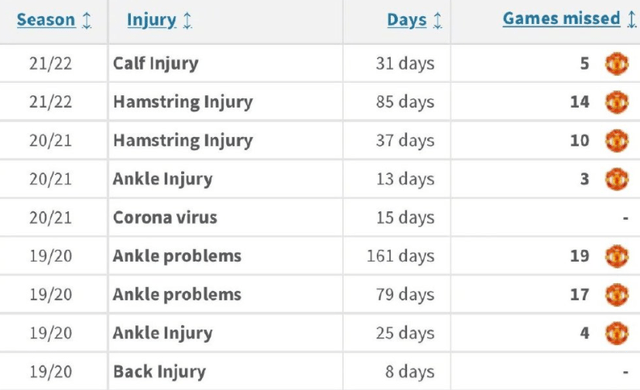 尤文要怪,只能怪他们自己太心急,结果才摊上了这事。如果他们认真评估博格巴的身体,也许就不会出现这个问题了(上图是他最近这3年在曼联的伤病史)。不过这也难怪尤文高层,像博格巴这样的巨星,如果正常转会的话,身价随时要上亿欧元,如今有机会免签,尤文肯定不会错过,一旦因为博格巴身上的伤病,尤文犹豫不决的话,可能早就被其他豪门抢走了,因此尤文只能先下手为强。