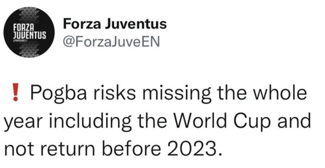 几天前,博格巴在训练中发现半月板有伤,之后他缺席了尤文和巴萨的友谊赛。没想到经过详细检查后,博格巴的伤病比预想中的要严重,可能导致他在2022年剩下的时间直接报销。