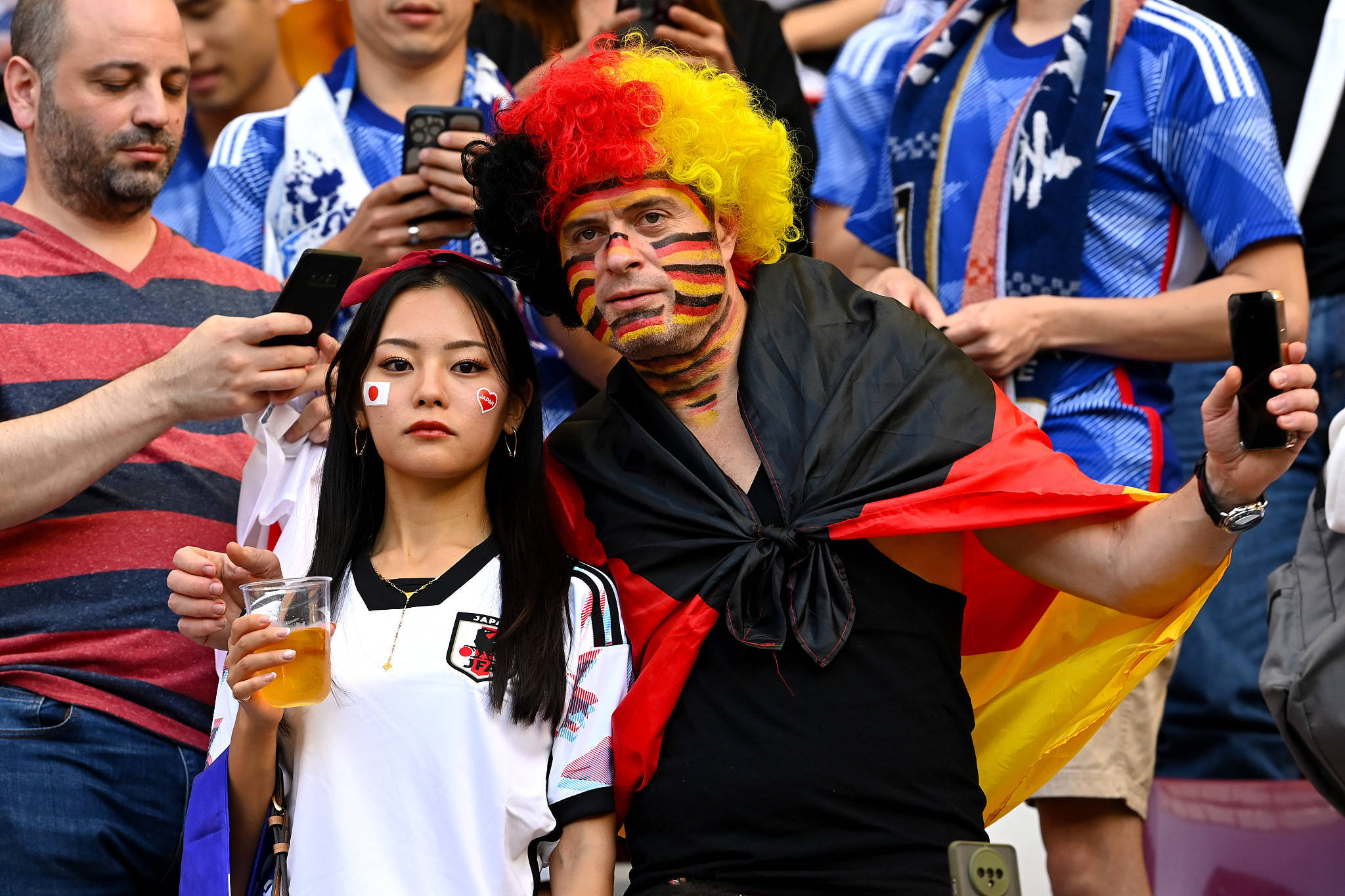 而另一场比赛,德国队1-2输给日本,是又一个大冷门。沙特2-1击败阿根廷那场比赛可能有运气成分,有阿根廷下半场轻敌的成分,但是德国队输给日本,是输了气质,输了技术。德国队赛前,集体捂住嘴巴,表达国际足联不让他们戴彩虹袖标的不满,那张首发全家福也成了焦点,被疯狂转发。