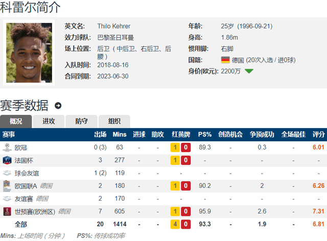 现年25岁的科雷尔,身高1.88米,是一位右脚中卫,还可以踢右后卫和后腰,是巴黎的重要轮换球员。科雷尔与巴黎仅剩下1年合同,目前球员在德转的身价为2200万欧元。科雷尔上赛季各项赛事一共为巴黎出战了34场比赛,其中20次是首发出场,打入了2个进球。