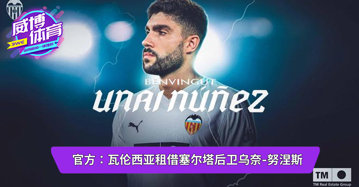 官方:瓦伦西亚租借塞尔塔后卫乌奈-努涅斯