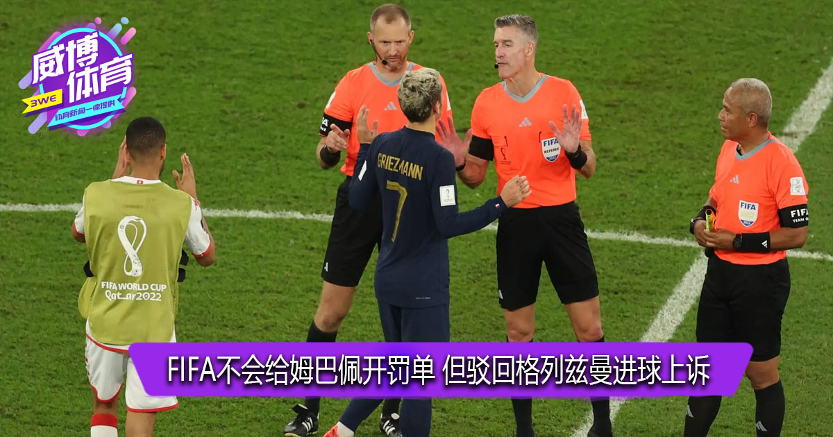 FIFA不会给姆巴佩开罚单 但驳回格列兹曼进球上诉